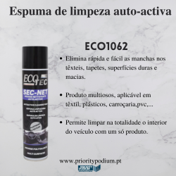 Aplique o Sec-Net na superfície a limpar. Seixe atuar e limpe. Em texteis e tapetes, use como uma espuma de limpeza.